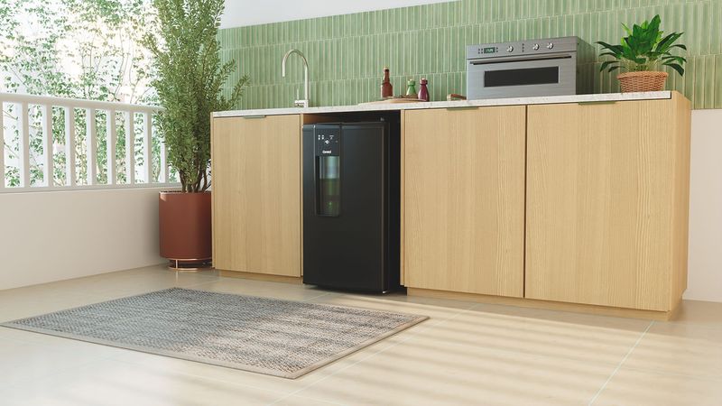 O design com detalhe em vidro une praticidade e estilo: Nem precisa abrir a porta para conferir quantas cervejas ainda tem!