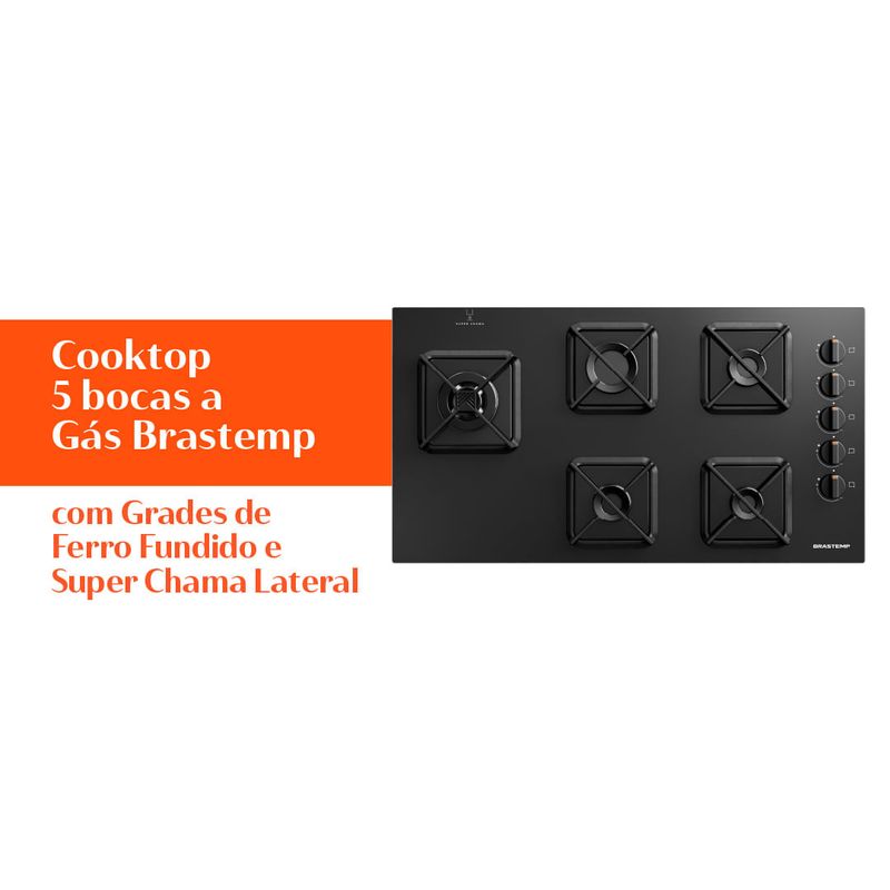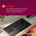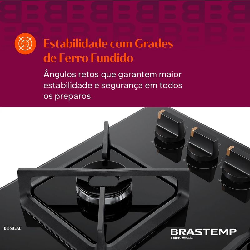 Estabilidade, robustez e durabilidade que só poderiam ser Brastemp. As grades de ferro fundido proporcionam performance superior através de ângulos retos, que garantem maior estabilidade e segurança em todos os preparos.