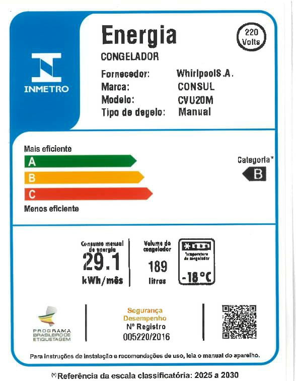 Seu freezer com eficiência energética comprovada que economiza até 10% de energia elétrica no ano.[1]