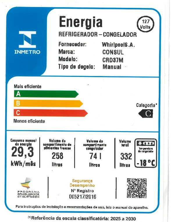 • Principais diferenciais: Eficiência Energética, Congelador Espaçoso, Prateleiras Removíveis, Cycle Defrost, Gavetão de Frutas e Legumes, Iluminação Interna