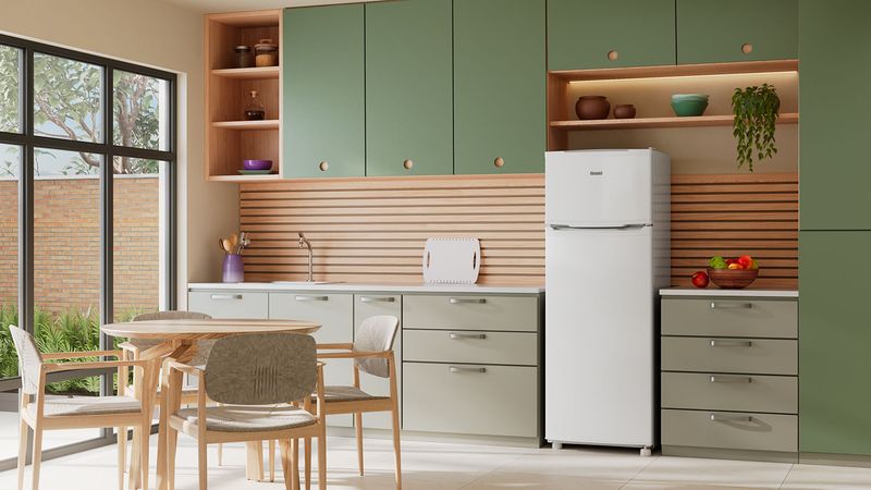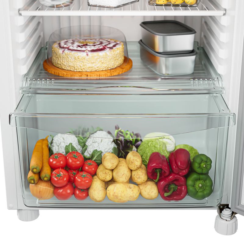 • Principais diferenciais: Eficiência Energética, Congelador Espaçoso, Prateleiras Removíveis, Cycle Defrost, Gavetão de Frutas e Legumes, Iluminação Interna