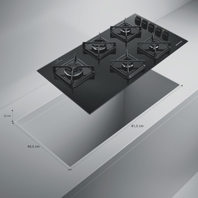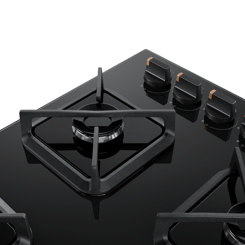 Principais diferenciaisB=Design, Estabilidade com Grades de Ferro Fundido, Chamas Especiais, Mesa de Vidro Temperado, Botões Removíveis, Acendimento Superautomático