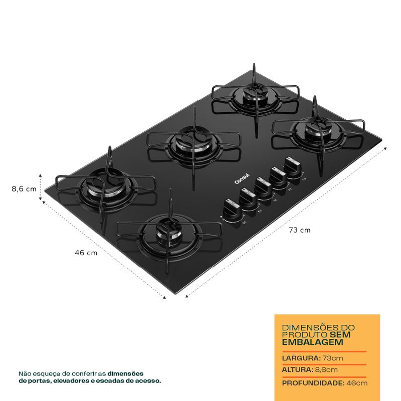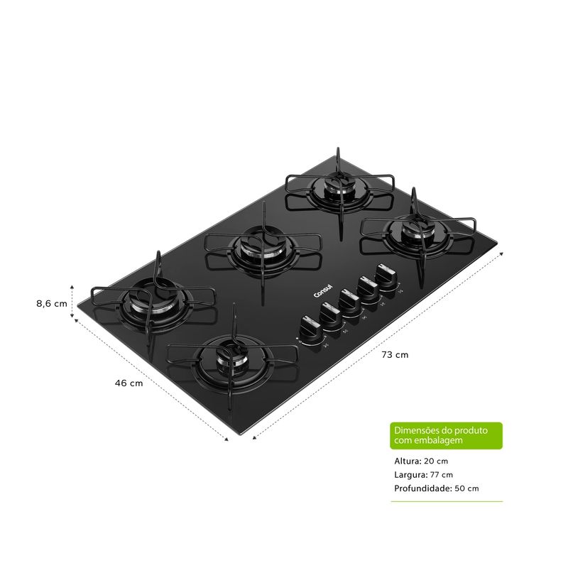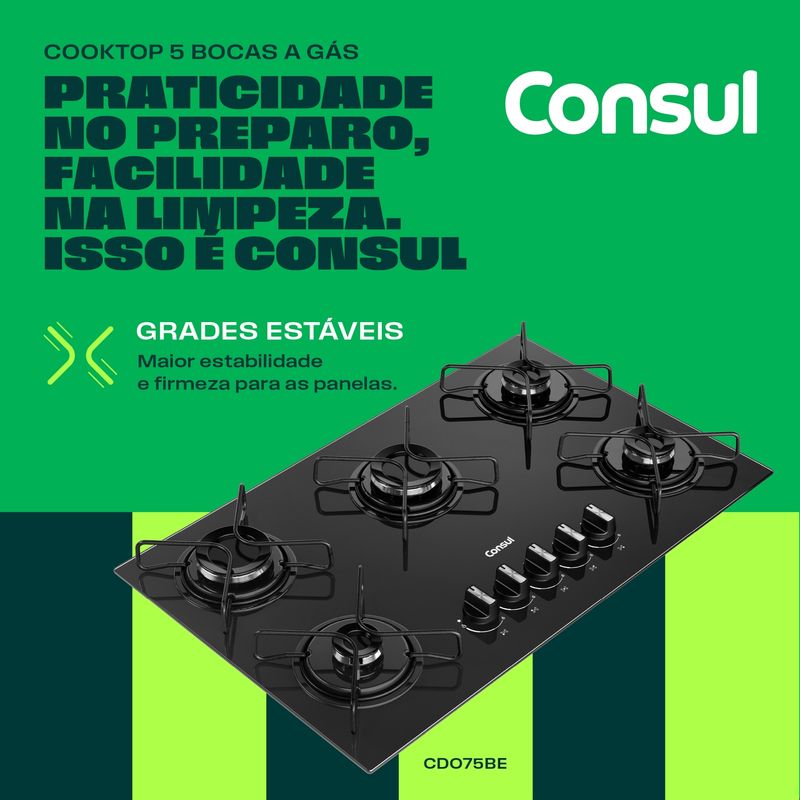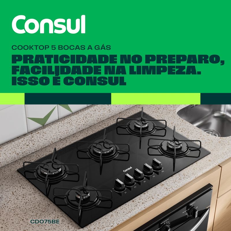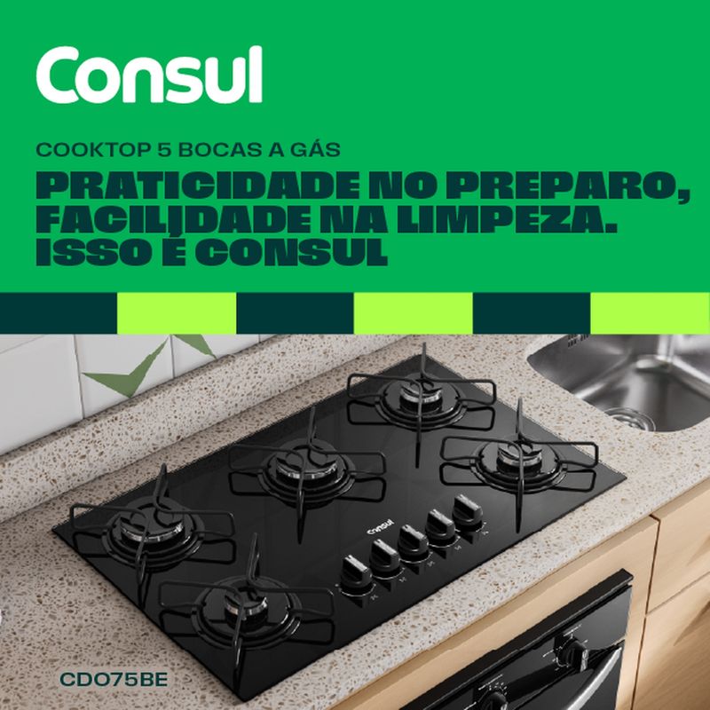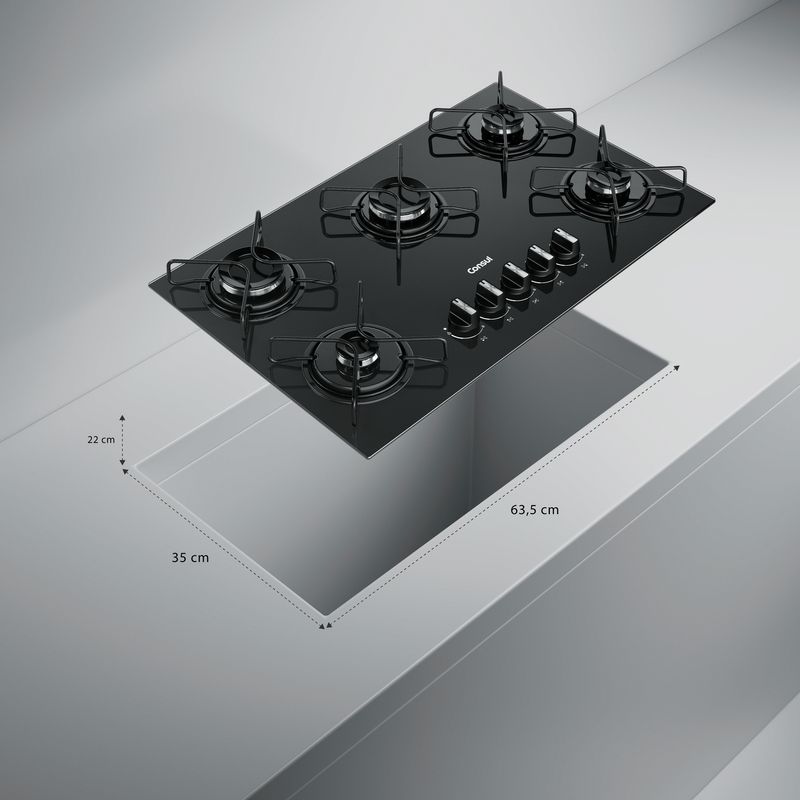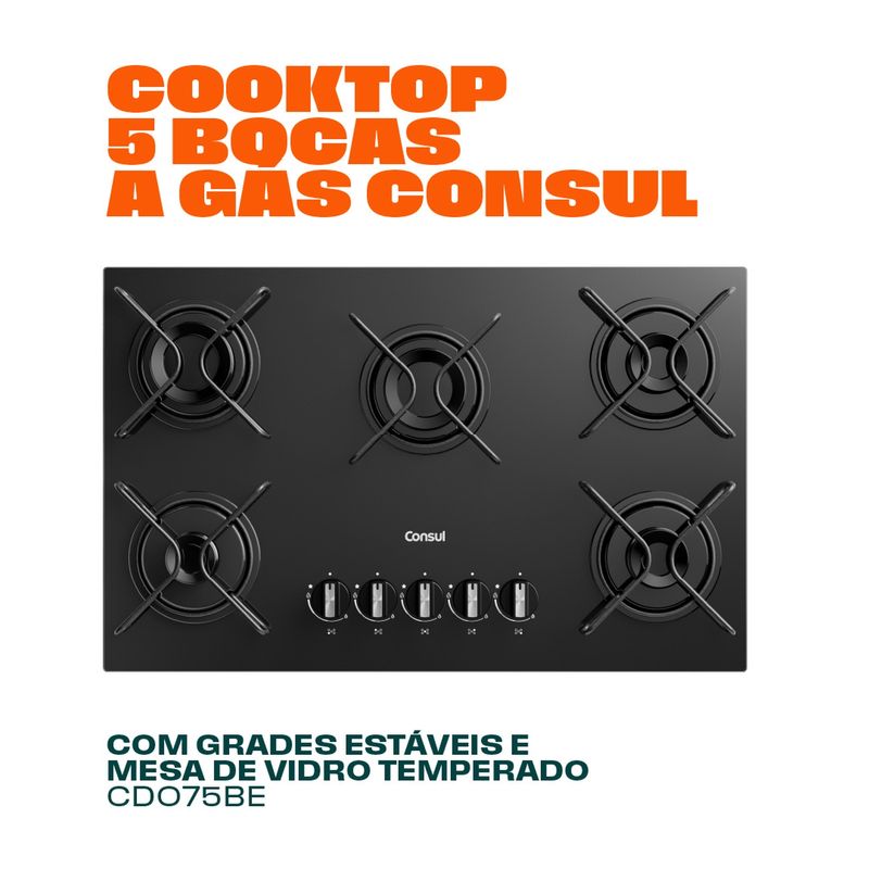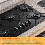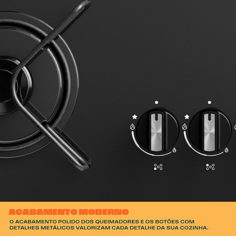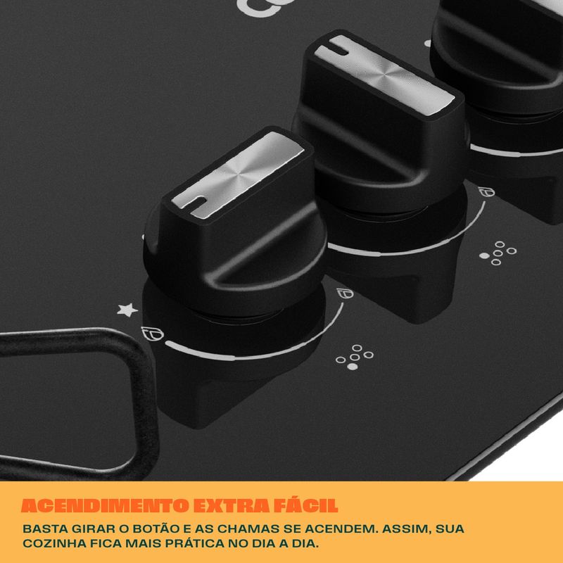 Cooktop com acendimento extra fácil. Basta girar o botão e as chamas se acendem. Assim, sua cozinha fica mais prática no dia a dia.