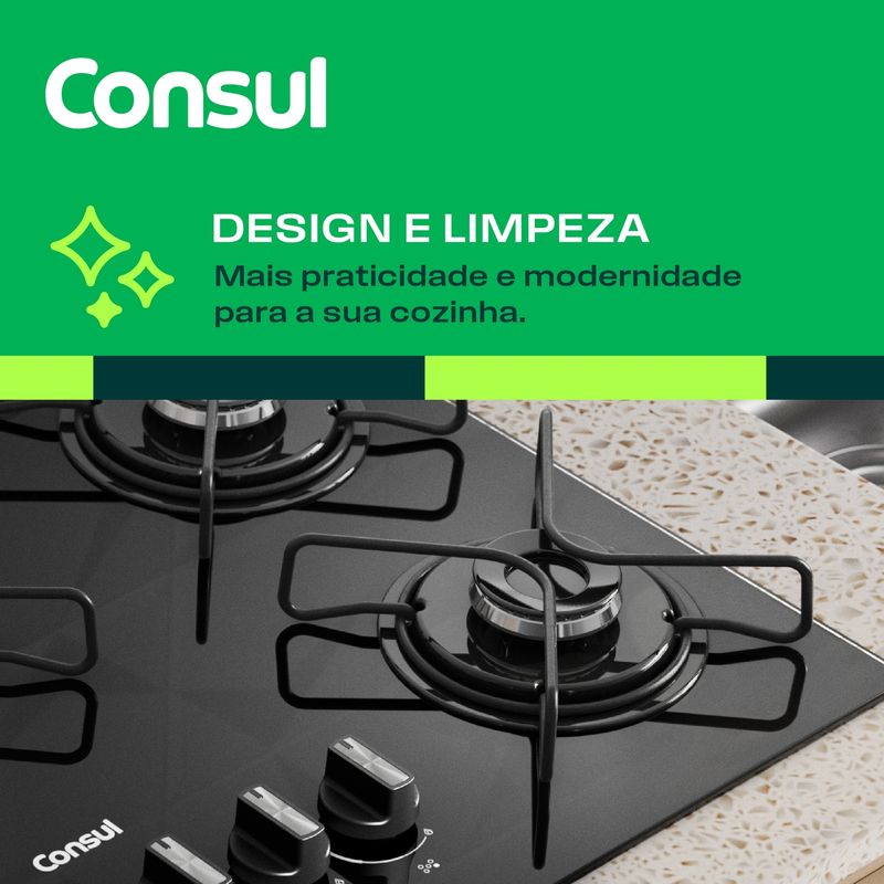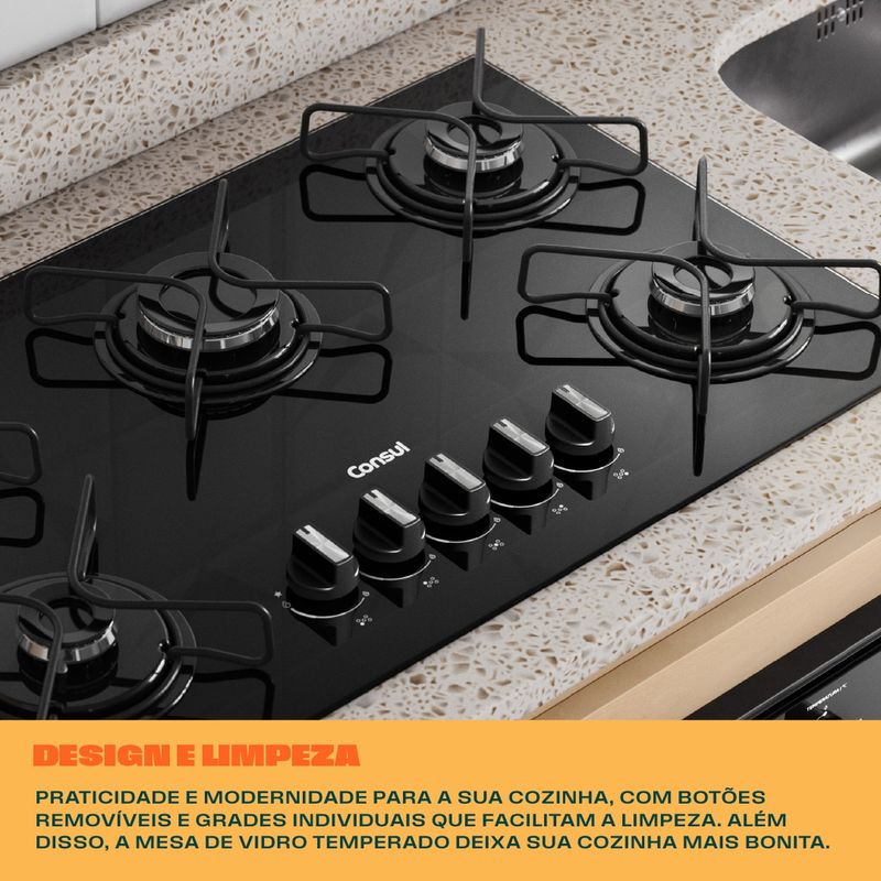 Mais praticidade e modernidade para a sua cozinha. Com botões removíveis e grades individuais, você ganha mais facilidade na hora da limpeza. Além disso, a mesa de vidro temperado deixa sua cozinha ainda mais bonita.