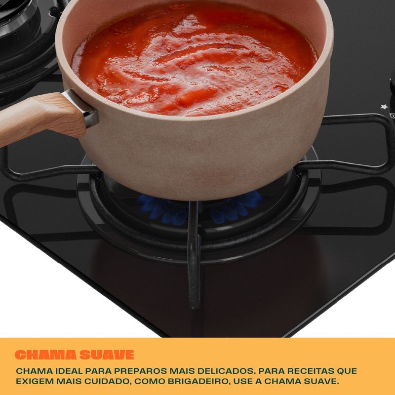Chama ideal para preparos mais delicados. Para receitas que exigem mais cuidado, como brigadeiro, use a Chama Suave. Mais versatilidade para seus preparos.