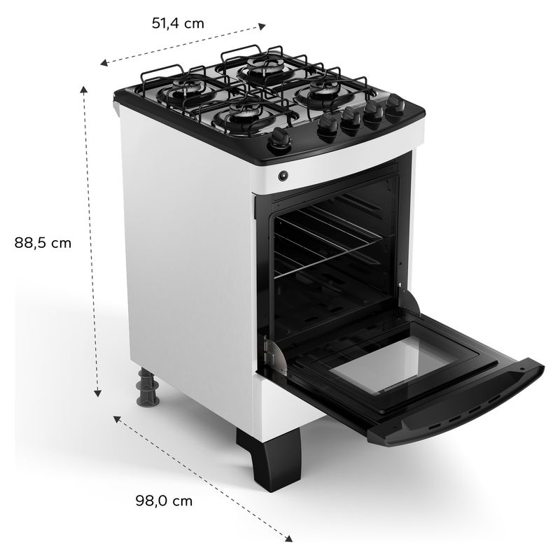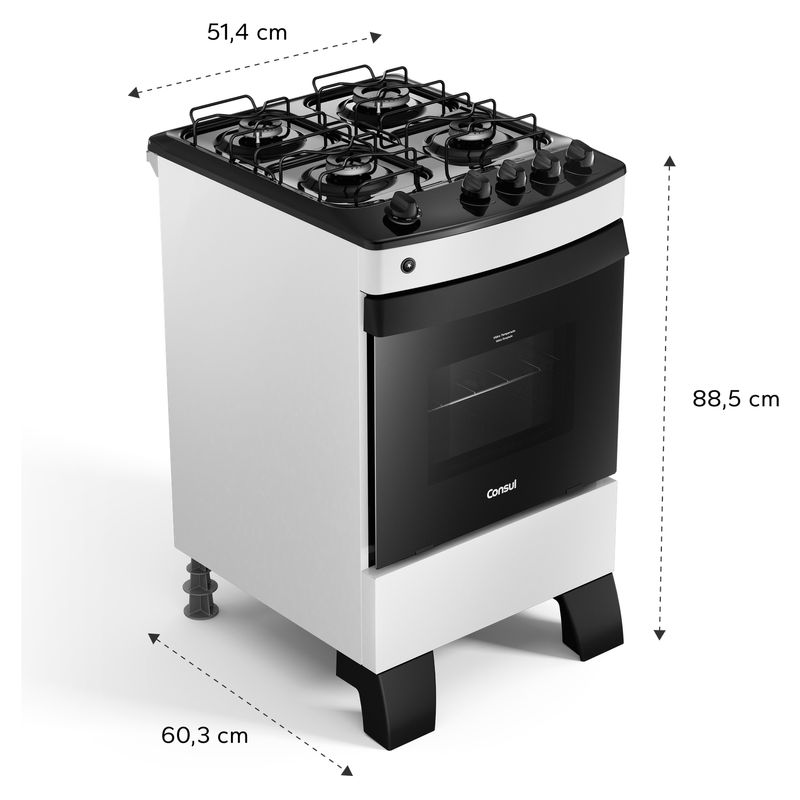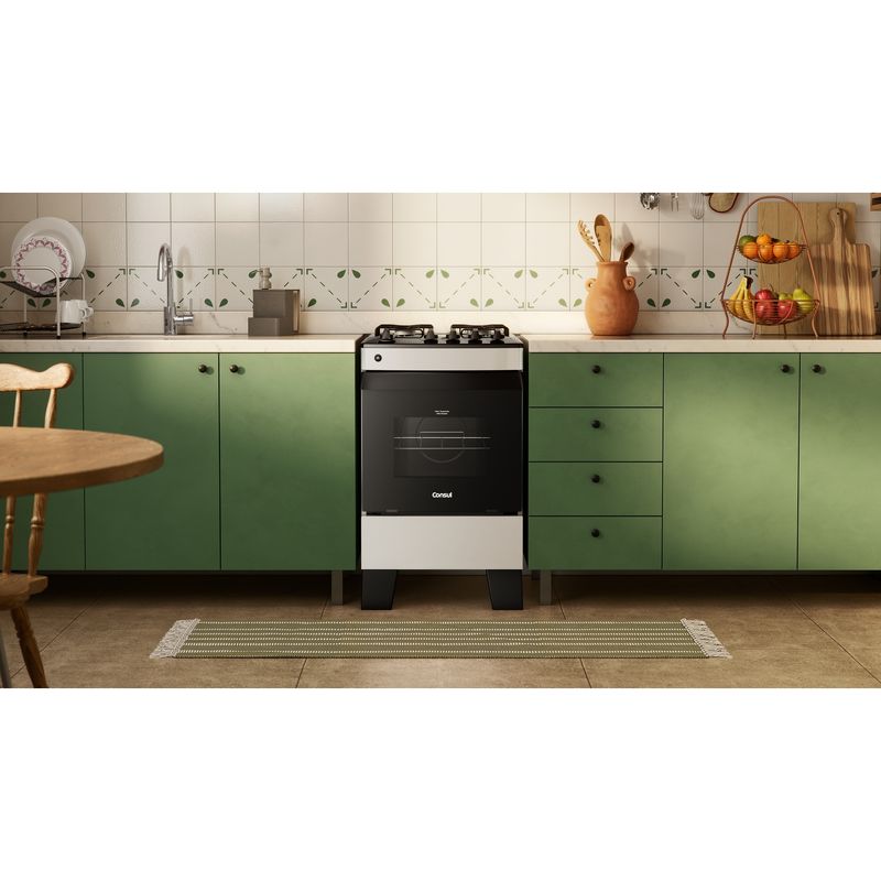 Com quinas não cortantes e válvula contra vazamento de gás, você terá um fogão de uma marca que você pode confiar. A Consul é conhecida pela qualidade dos seus produtos e não te deixa na mão quando o assunto é segurança.