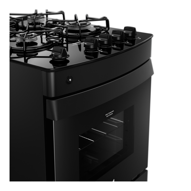 Com mesa espaçosa e o maior forno do segmento¹, você tem espaço de sobra para suas panelas sem malabarismo, e ainda consegue assar seu frango sem problemas no forno de 58L. Assim, você fica mais confortável para cozinhar sem se preocupar com espaço.