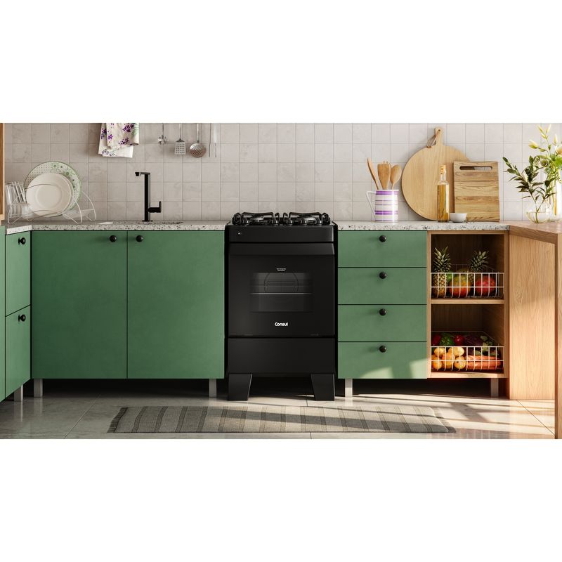 Com quinas não cortantes e válvula contra vazamento de gás, você terá um fogão de uma marca que você pode confiar. A Consul é conhecida pela qualidade dos seus produtos e não te deixa na mão quando o assunto é segurança.