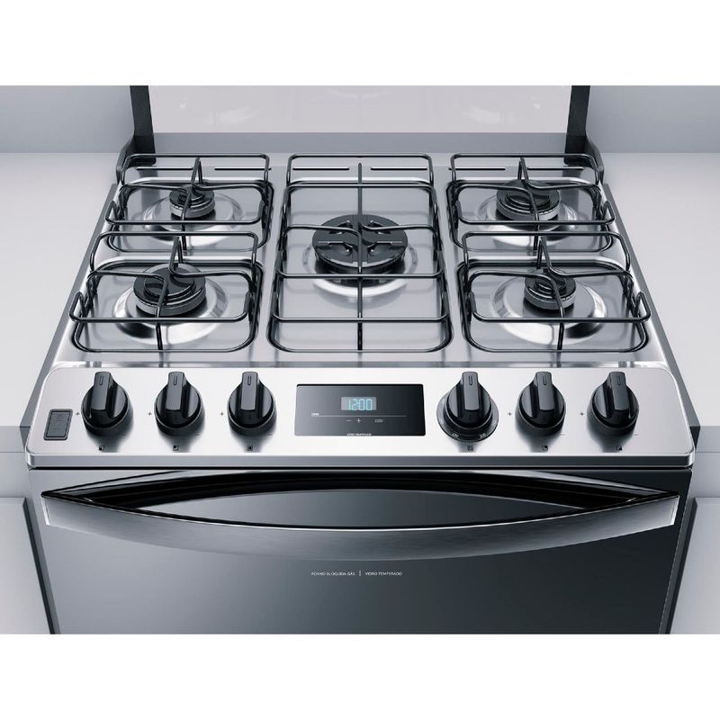 Principais diferenciaisTouch Timer, Turbo Chama, Grades Individuais, Botões Removíveis com Aro Protetor, Forno com Vidro Interno Removível, Puxador em Alumínio Escovado