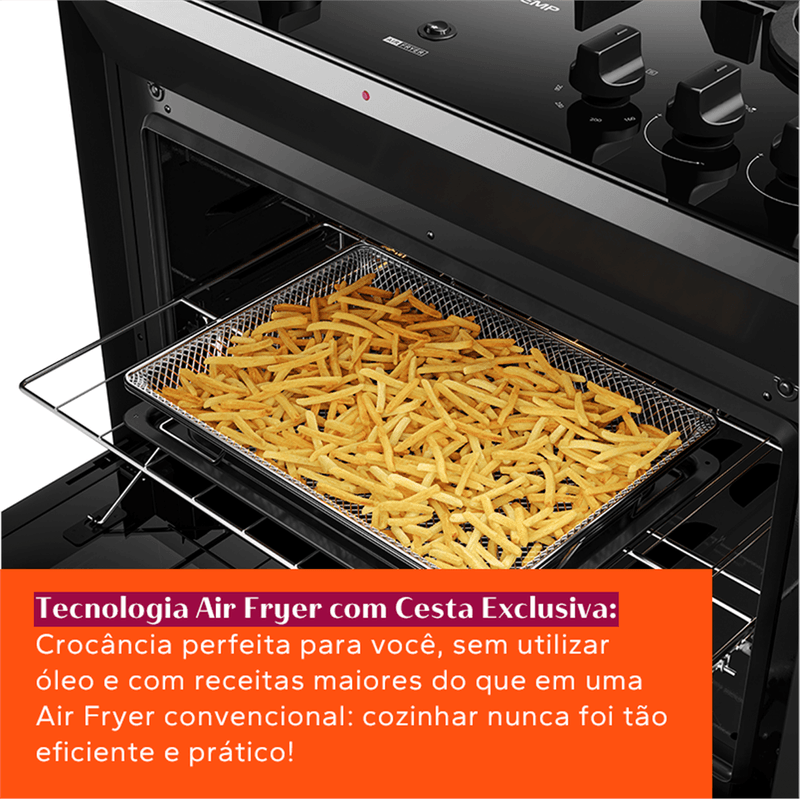 A tecnologia Air Fryer com cesta exclusiva garante a crocância perfeita para você, sem utilizar óleo e em receitas maiores do que em uma Air Fryer convencional - não precisa nem dar aquela mexidinha no meio do processo. Com maior versatilidade e alta capacidade, cozinhar nunca foi tão eficiente e prático.