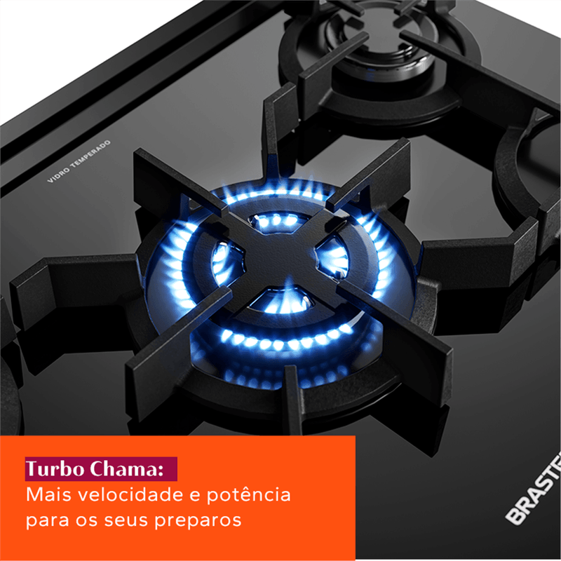 Praticidade é ter um fogão com queimador de chama especial. Ela é maior, mais potente e distribui calor por igual.