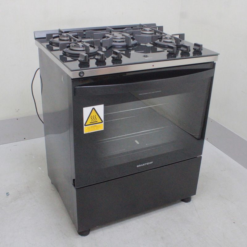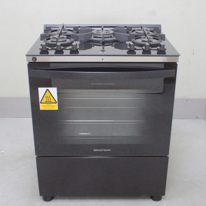 SeminovosEletrodomésticosFogãoFogão Brastemp 5 Bocas Preto Com Mesa de Vidro, Função Air Fryer e Turbo Chama - BFS5LAENS2_WOTIMO_CC6464788