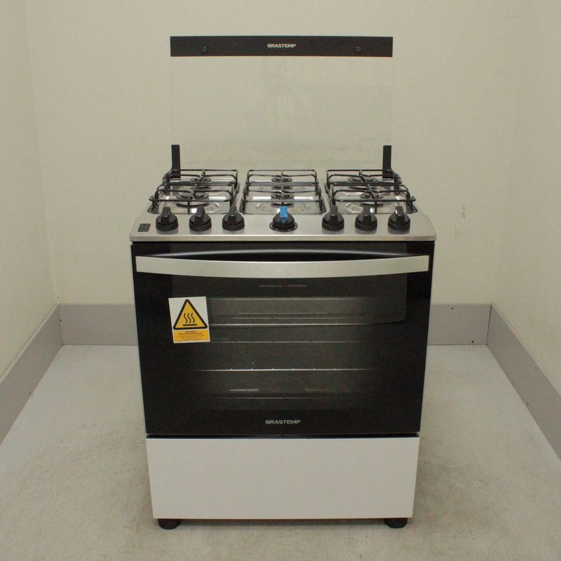 SeminovosEletrodomésticosFogãoFogão Brastemp 6 Bocas Branco Com Botões Removíveis E Exclusivo Aro Protetor - BFS6NCBUS2_WOTIMO_CI5490389