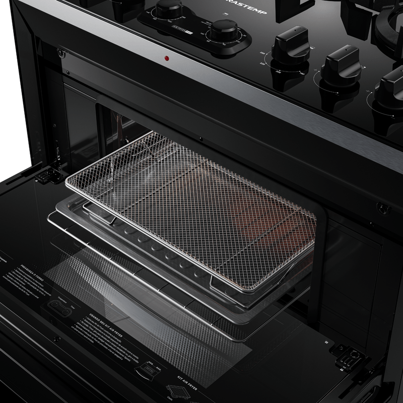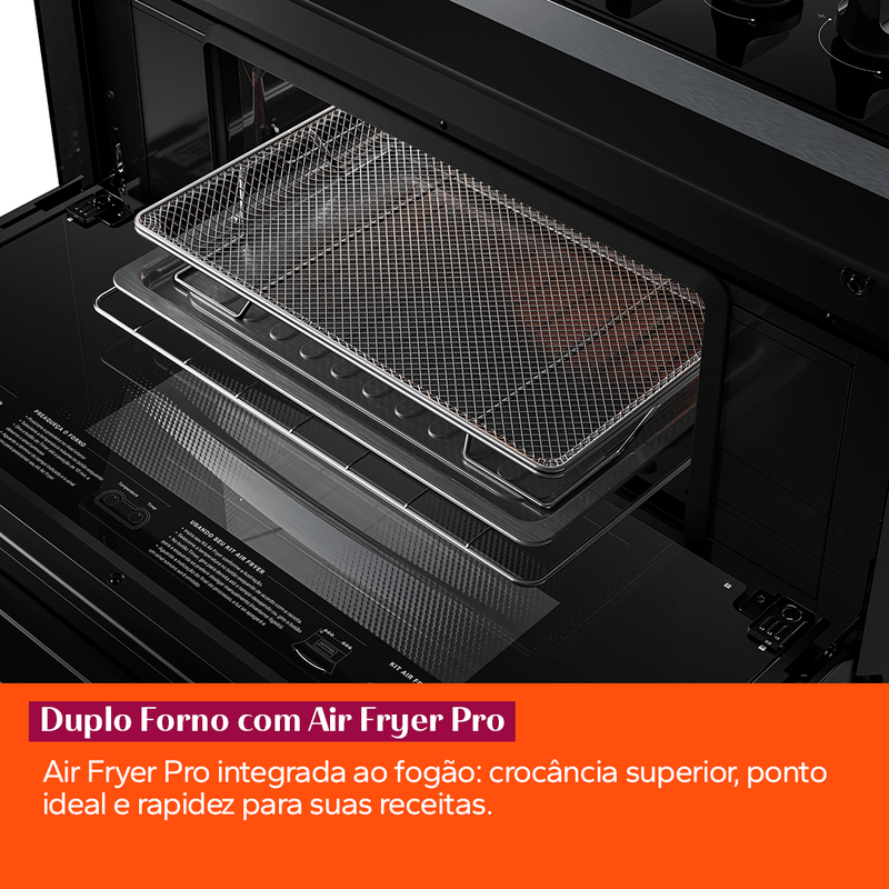 Todas as possibilidades ao seu alcance: além do forno tradicional, você conta com o poder de uma Air Fryer Pro integrada ao fogão. O calor é distribuído de forma homogênea e uniforme, resultando em crocância superior e o ponto ideal em menos tempo. Potência e performance para você preparar suas receitas.