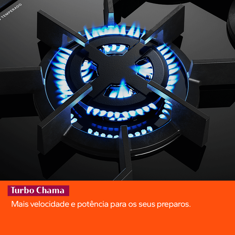 Praticidade é ter um fogão com queimador de chama especial. Ela é maior, mais potente e distribui calor por igual. É mais velocidade para os seus preparos.