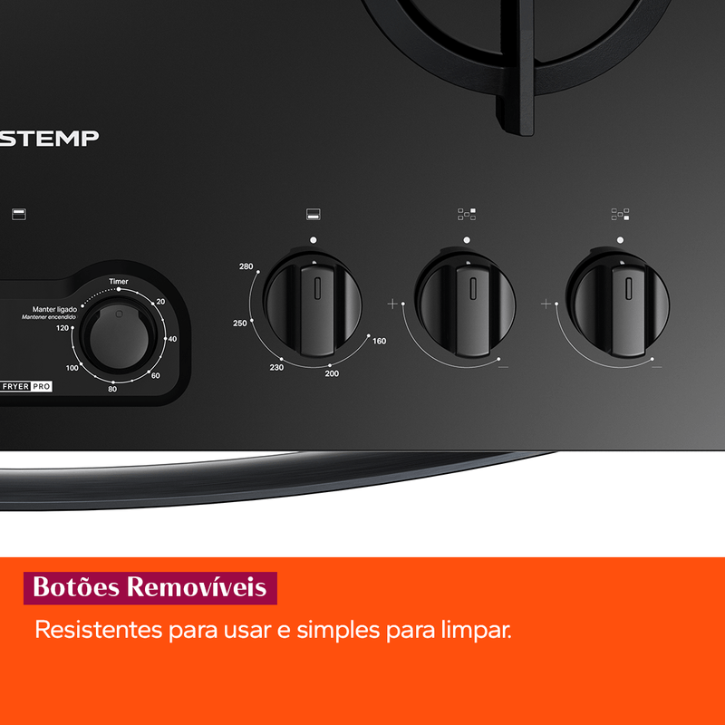 Design moderno, seguro e fácil e de limpar. Com resistência superior, o vidro temperado oferece mais segurança durante o preparo das suas receitas* e é fácil de limpar, garantindo um toque de sofisticação e funcionalidade para a sua cozinha.