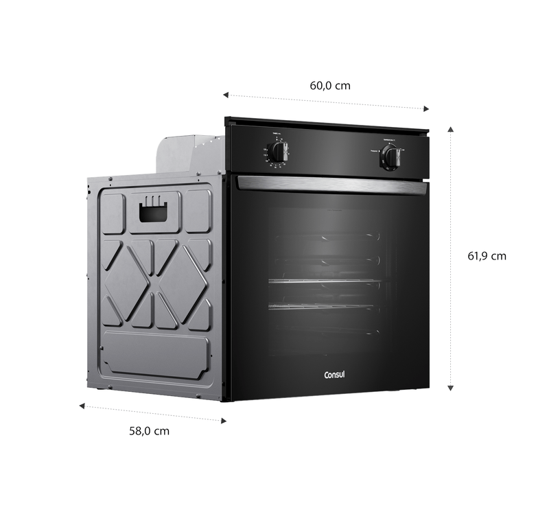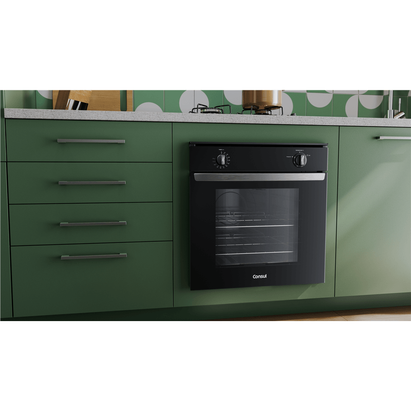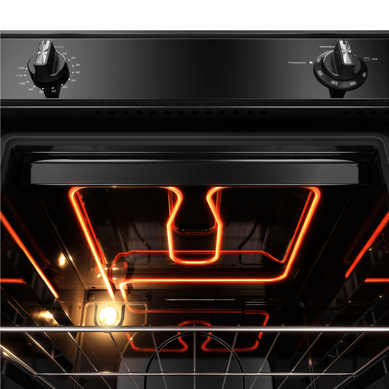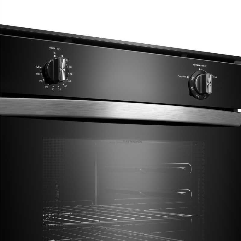 Design bem pensado pra você. O forno preto com acabamentos metálicos, traz o design moderno que combina com qualquer cozinha.