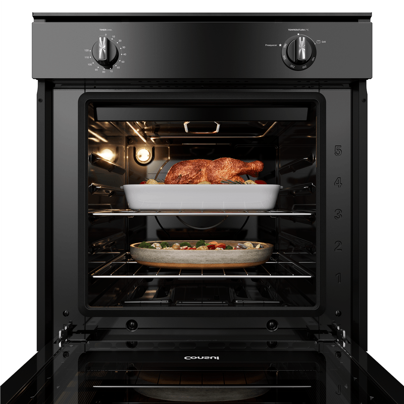 Agora você já pode cozinhar sem se preocupar com espaço no forno. Com as 2 prateleiras, você assa diferentes pratos de uma vez, e ajustando os 5 níveis de altura, prepara desde pequenos até grandes assados.