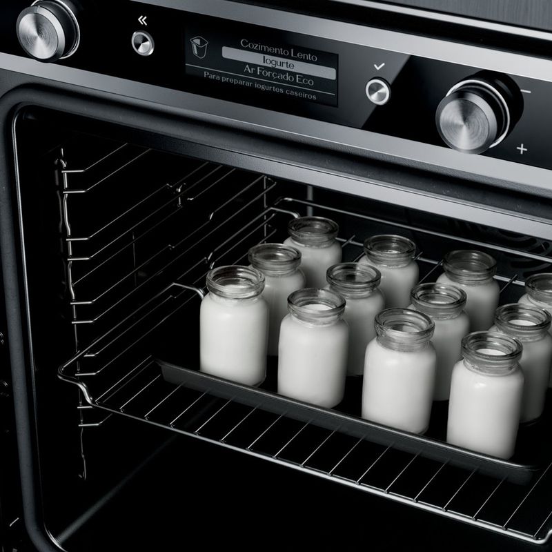 Aproveite as 7 funções especiais que dão a alta performance aos seus preparos. Como a Eco Ar Forçado, que permite até mesmo assar 2 pratos ao mesmo tempo, sem misturar os cheiros. Ou a função Fermentar, que cria o ambiente ideal de temperatura para fermentar massas de pães, conservas e iogurtes.
