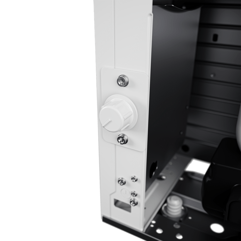Com 3 níveis de temperatura (máximo, mínimo e médio), você pode ajustar facilmente para todas as suas necessidades com apenas um giro. Freezer vazio? Nível mínimo. Freezer cheio? Nível máximo.