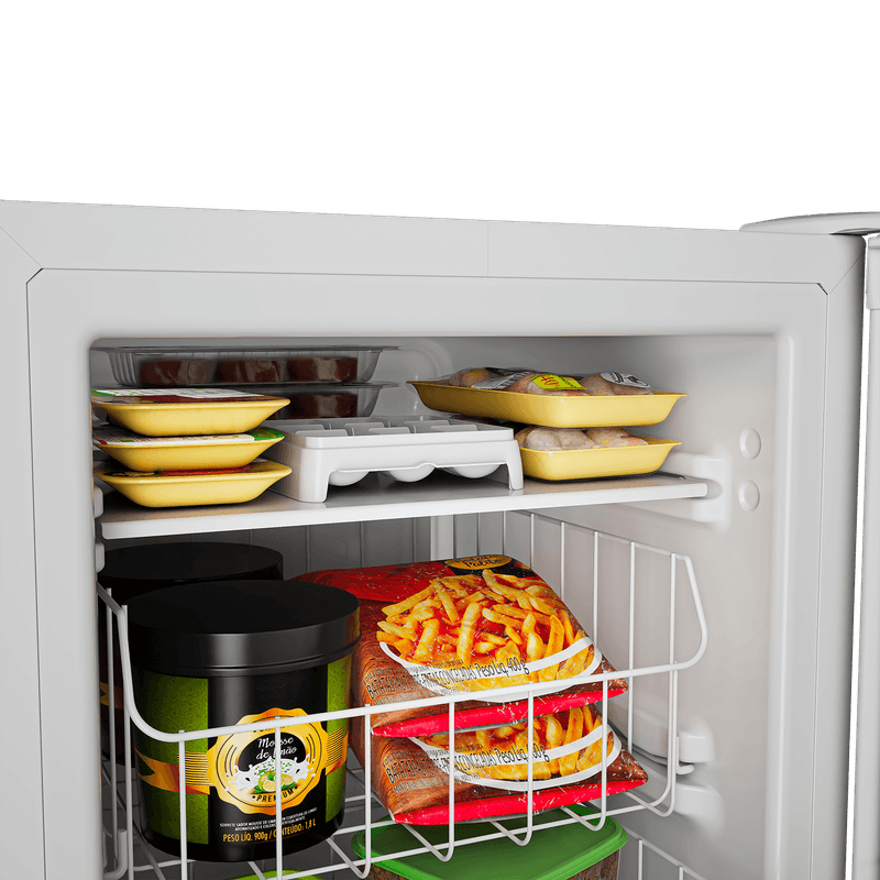 Chega de malabarismo para organizar os seus congelados! 3x maior que o freezer de uma geladeira*, é espaçoso por dentro e se encaixa perfeitamente em qualquer lugar da sua casa.[2]