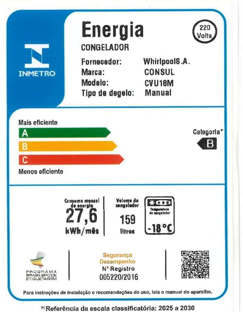 Seu freezer com eficiência energética comprovada que economiza até 10% de energia elétrica no ano.*