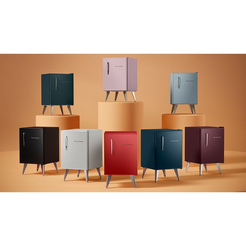 Onde chega, o Frigobar Brastemp Retrô se torna o destaque, deixando aquele canto da casa com ainda mais personalidade e transformando o seu mundo. Os acabamentos resgatam o design vintage com pés palito, puxadores metálicos e o icônico logo Brastemp dos anos 50.