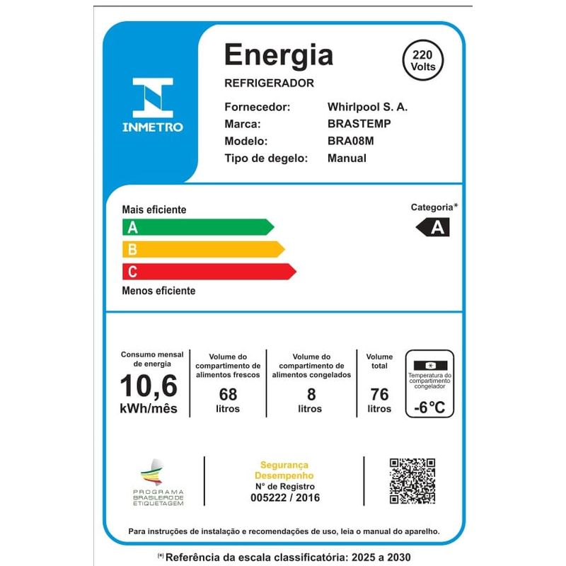 Seu frigobar com performance de refrigeração eficiente que economiza até 21% de energia elétrica no ano[1].