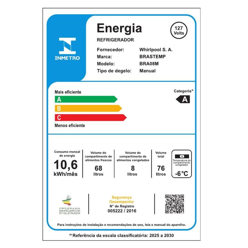 Principais diferenciaisEficiência Energética, Design Inconfundível que Transforma Qualquer Ambiente, Na Cor da sua Autenticidade, A Sua Cara, Também da Porta pra Dentro, Freezer que Dá um Gelo em Qualquer Frigobar,