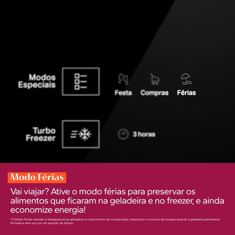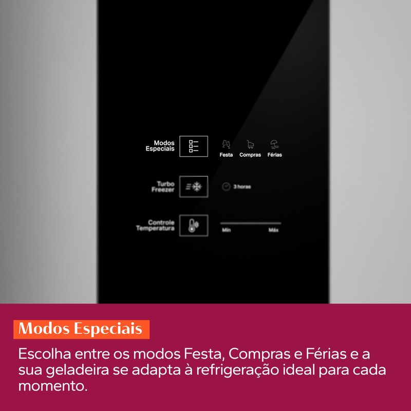 Escolha entre os modos Festa, Compras e Férias e a sua geladeira se adapta à refrigeração ideal para cada momento.