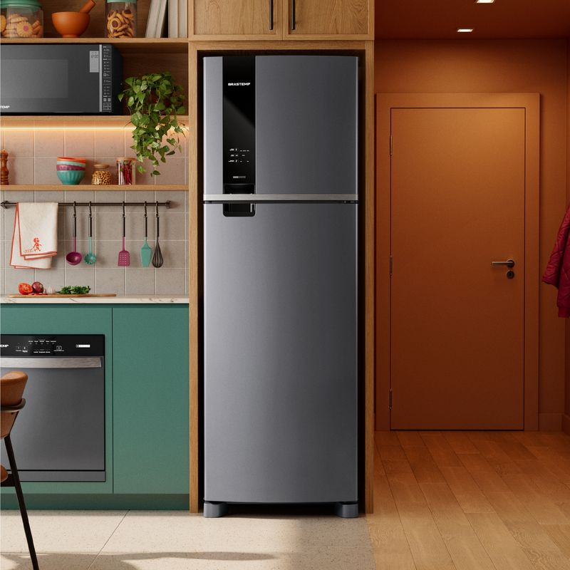 São 3 anos de garantia[4] contra ferrugem e corrosão na porta da sua geladeira! Revestimento especial da Brastemp com película impermeabilizante e materiais de alta qualidade que protegem a sua geladeira.