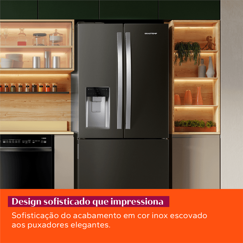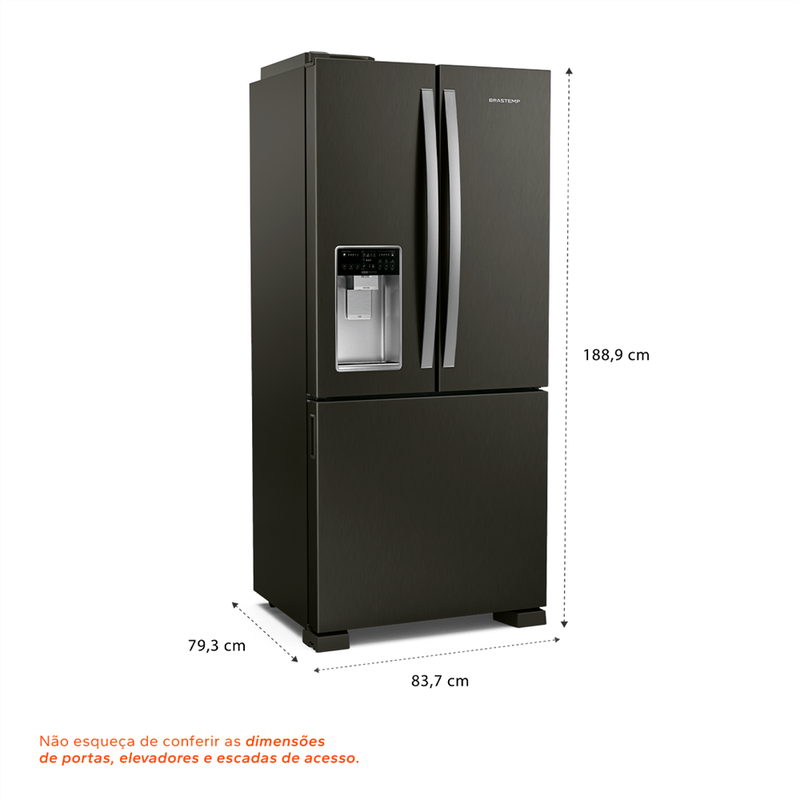 Revestimento especial da Brastemp com película impermeabilizante e materiais de alta qualidade que protege a sua geladeira contra ferrugens e corrosões. São 3 anos de garantia no material da porta da sua geladeira.