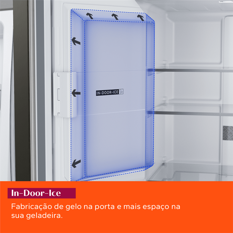 Dispenser de gelo e água em 3 temperaturas - natural, fria ou gelada - com filtragem classe A na porta da sua geladeira. Hidratação em três temperaturas e gelo em dois formatos ao toque de um botão!