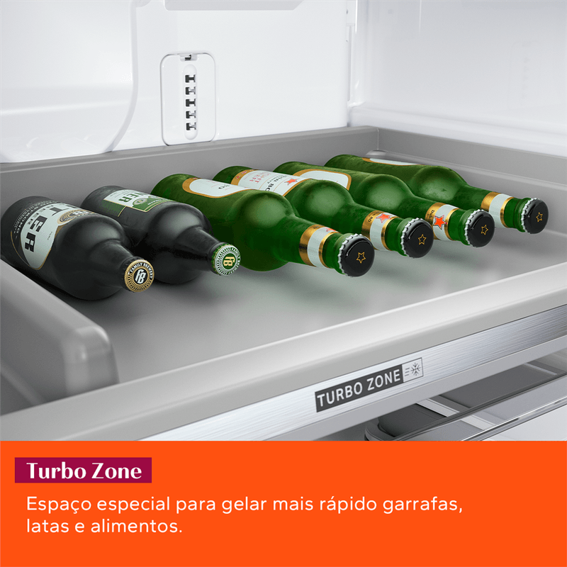 Lugar de alimento é na prateleira que você quiser! Tecnologia que distribui o ar frio igualmente na geladeira. Dá para organizar tudo do seu jeito.