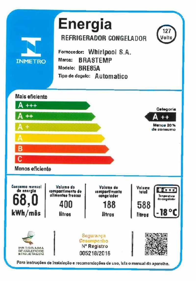 Performance de refrigeração eficiente que economiza até 20% de energia*. *A Tecnologia A++ economiza até 20% de energia em relação a classificação energética A do INMETRO.