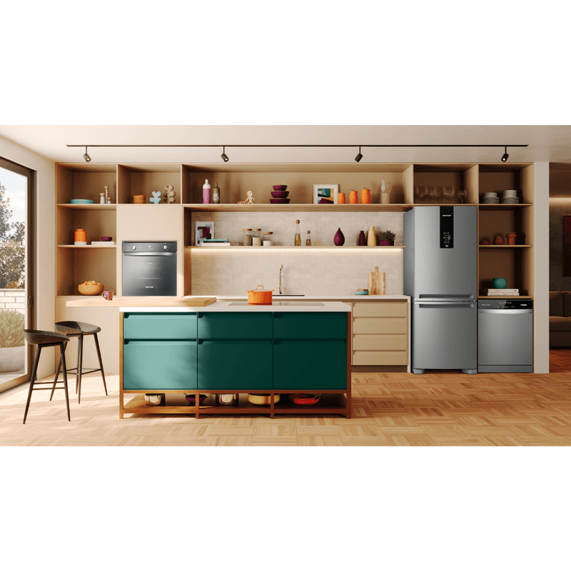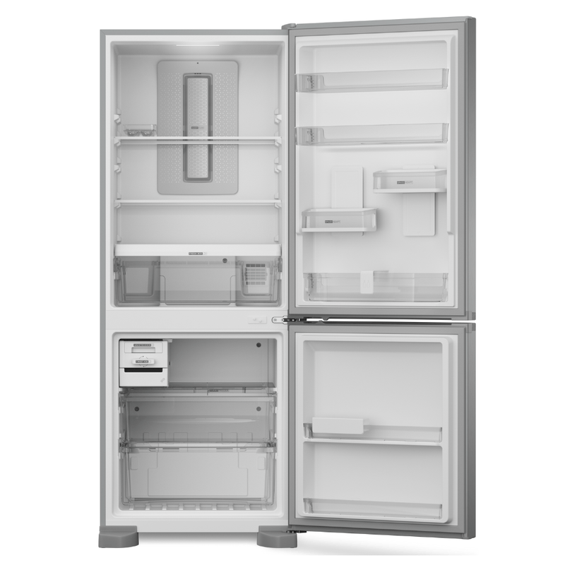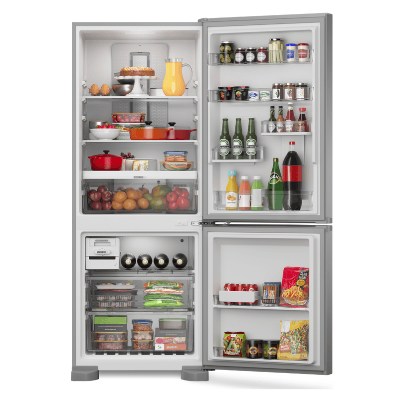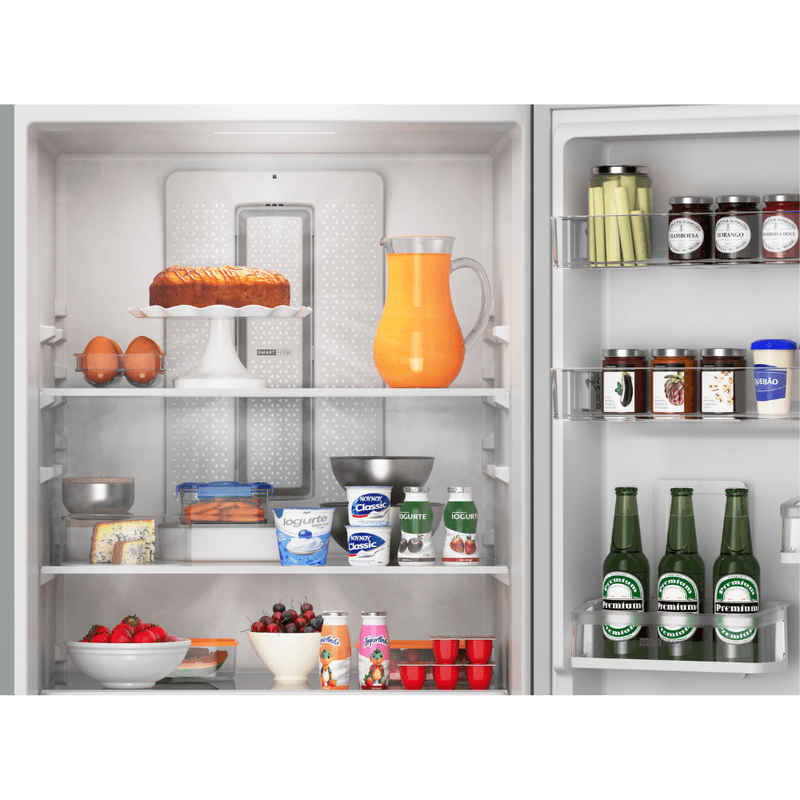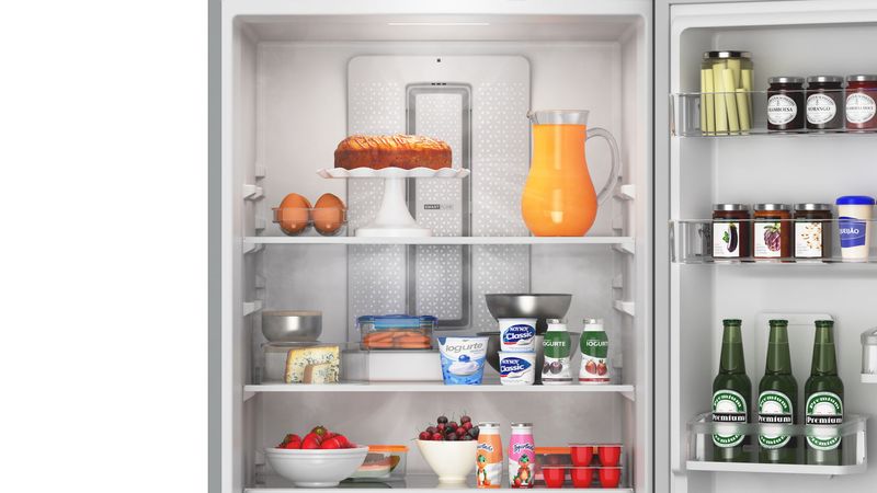 Lugar de alimento é na prateleira que você quiser! Tecnologia que distribui o ar frio igualmente na geladeira, dá para organizar tudo do seu próprio jeito.