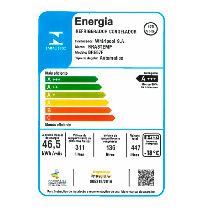 Performance de refrigeração eficiente que economiza até 30% de energia*. *A Tecnologia A+++ economiza até 30% de energia em relação a classificação energética A do INMETRO.