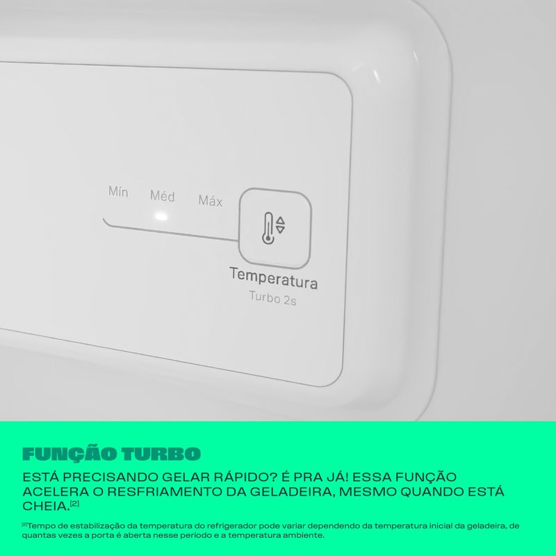 Está precisando gelar rápido? É pra já! Essa função acelera* o resfriamento da geladeira, mesmo quando está cheia. [2]