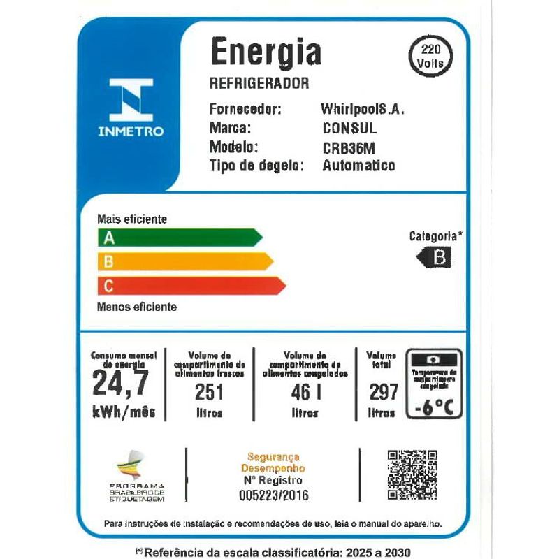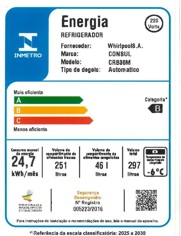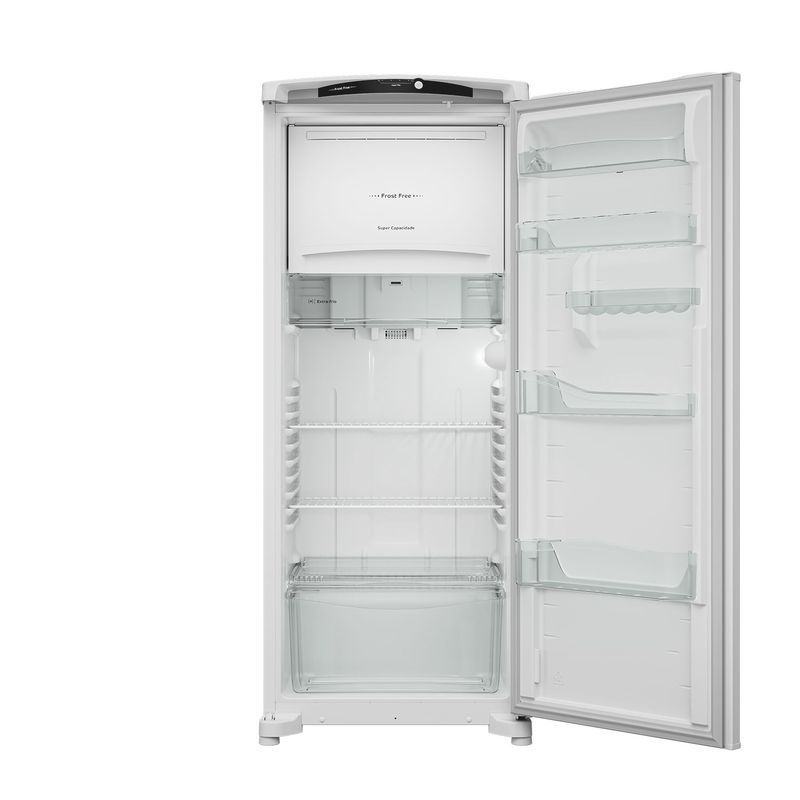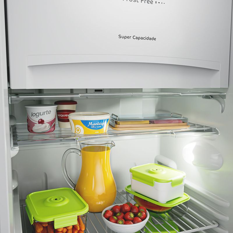 • Principais diferenciais: Eficiência Energética, Frost Free, Congelador Espaçoso, Espaço Extra-Frio, Painel Externo, Prateleiras Ajustáveis
