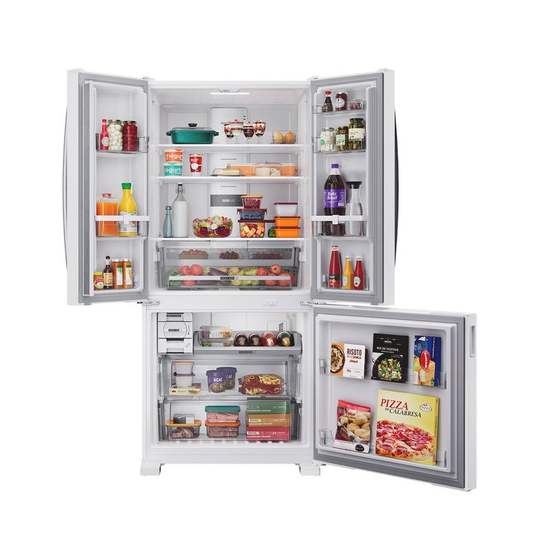 Lugar de alimento é na prateleira que você quiser! Tecnologia que distribui o ar frio igualmente na geladeira, deixando todos os compartimentos com a mesma temperatura, para você organizar tudo do seu próprio jeito.