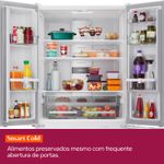 Geladeira cheia ou vazia? Abre e fecha o tempo todo? A tecnologia Smart Cold controla de forma precisa a temperatura do seu refrigerador garantindo menos oscilações e melhor preservação dos alimentos, mesmo com frequente abertura de portas.