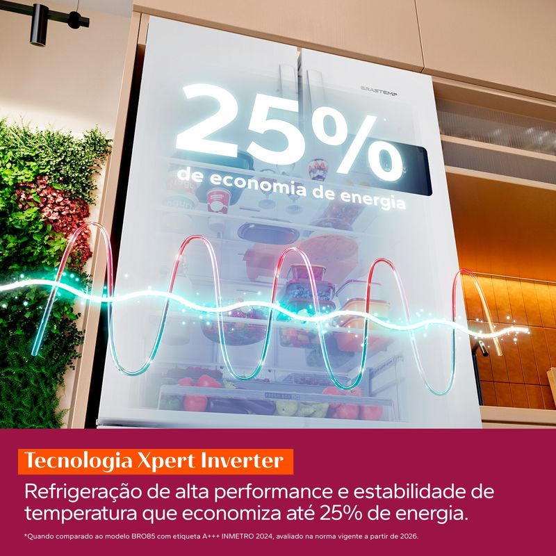 Refrigeração de alta performance e estabilidade de temperatura que economiza até 25% de energia. A Tecnologia Xpert Inverter entrega eficiência energética e melhor desempenho na preservação de alimentos.