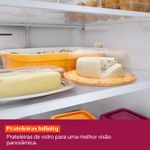 Mais liberdade e visibilidade para organizar tudo do seu jeito. ?As prateleiras de vidro temperado e borda infinita combinadas à iluminação em LED oferecem uma visão panorâmica e clara no interior da geladeira. Design feito para você ter tudo ao alcance dos seus olhos.