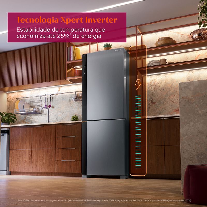 Refrigeração de alta performance e estabilidade de temperatura que economiza até 25%[3] de energia. A Tecnologia Xpert Inverter entrega eficiência energética e melhor desempenho na preservação de alimentos. Você livre para viver sem preocupações.