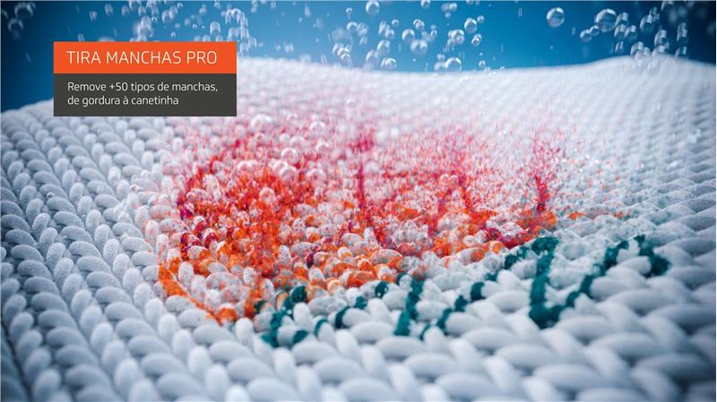 Quer uma lavagem poderosa? Combine o ciclo Tira Manchas Pro com a função Lavar com Vapor. Assim, é possível remover mais de 50 tipos8 de manchas e ainda contar com o vapor na remoção das sujeiras mais difíceis.