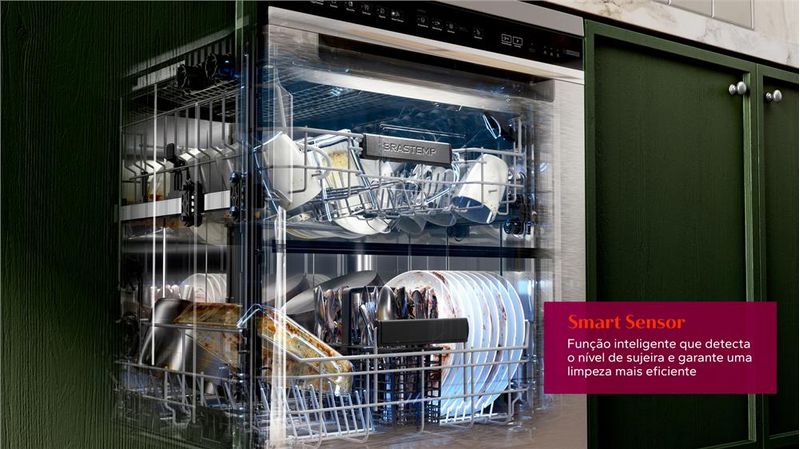 Função inteligente que detecta o nível de sujeira nas louças, calculando com precisão o tempo e quantidade de água para garantir uma limpeza mais eficiente.