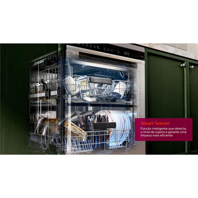 Função inteligente que detecta o nível de sujeira nas louças, calculando com precisão o tempo e quantidade de água para garantir uma limpeza mais eficiente.