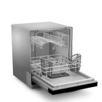 Interior com prateleiras flexíveis para acomodar louças de diversos tamanhos e formatos. Além de ter cestos específicos para talheres, que podem ser removíveis para auxiliá-lo melhor em cada lavagem.