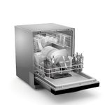 Lava por ciclo os conjuntos de louça para até 8 pessoas. Contendo 8 colheres de sobremesa, 8 colheres de sopa, 8 pratos de sopa, 8 colheres de chá, 8 garfos, 8 pires, 8 facas, 8 pratos, 8 copos, 8 xícaras e 8 pratos de sobremesa.