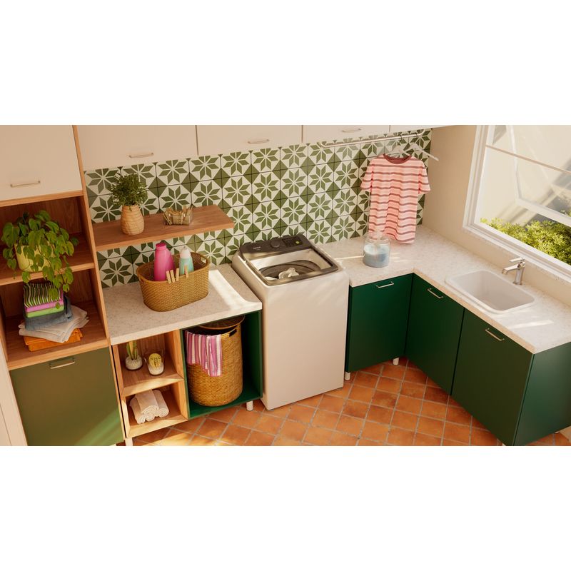 Tamanho compacto que ocupa pouco espaço e lava toda a roupa da semana de uma só vez [9]. Das roupas delicadas aos edredons [10], ela cuida de todas as peças da família para você não se preocupar.